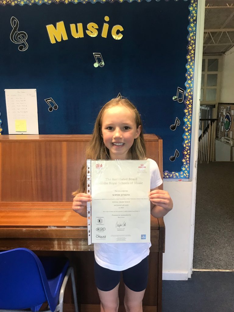 Brilliant result for Initial violin grade Sophie! Exam success at Langstone Primary Newport